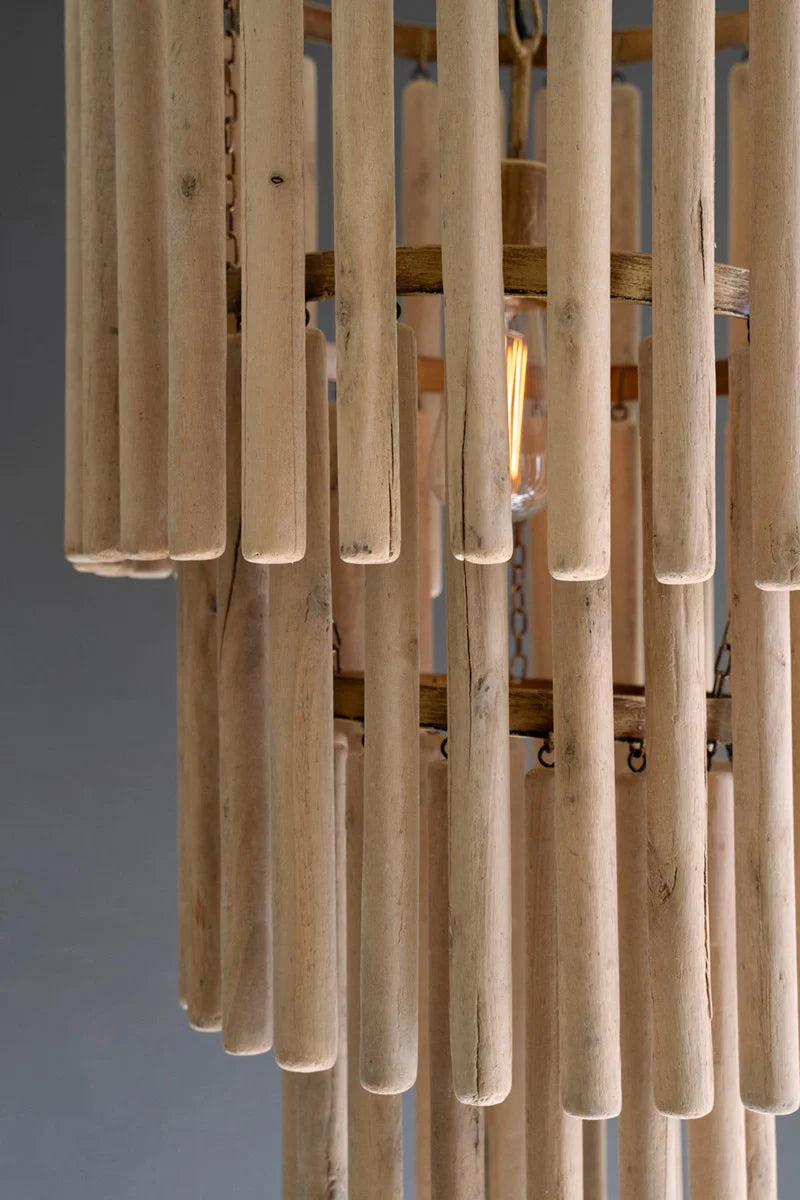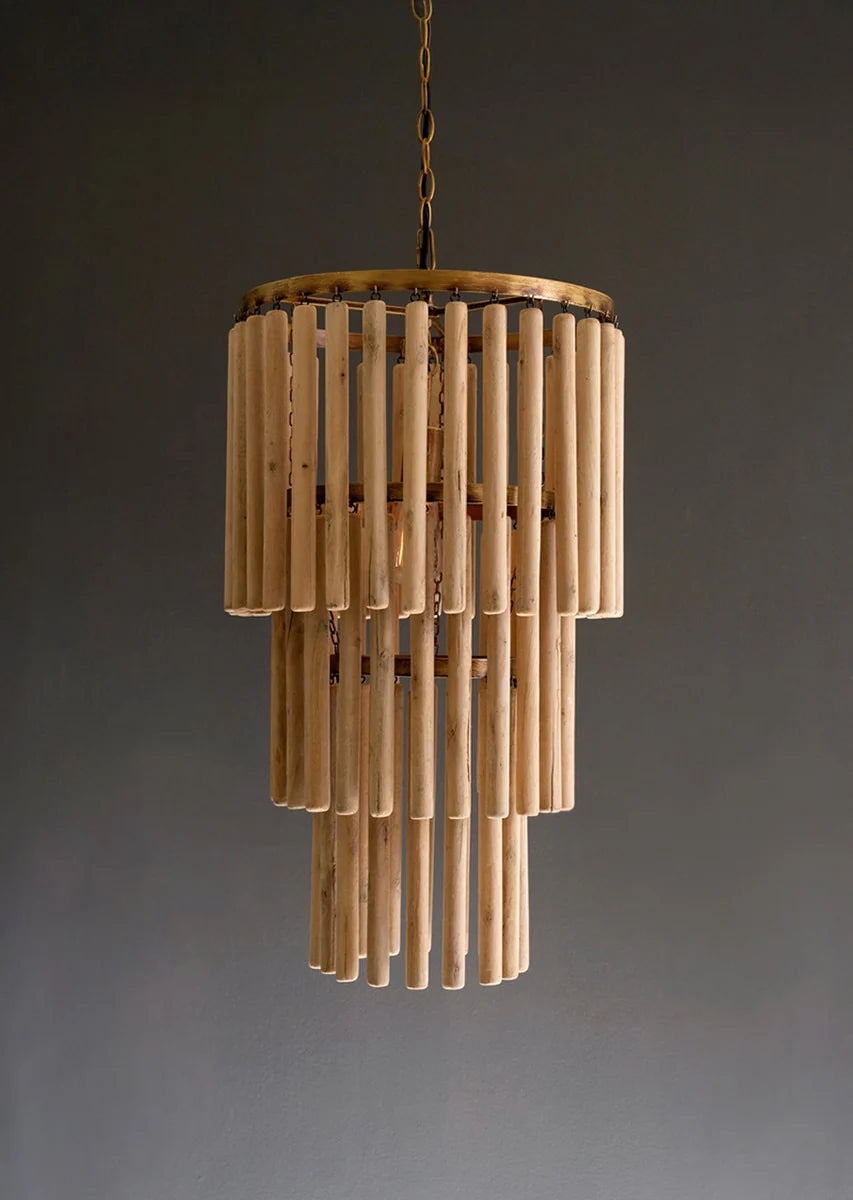Three-Tiered Wooden Pendant Light